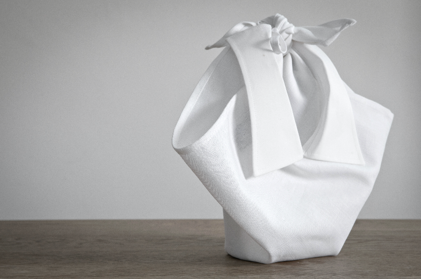 This design is a packaging for local products from Limburg. Furoshiki is an ancient Japanese folding technique; a square cloth was folded into a bag for clothes, gifts and other things. We used this technique to wrap the Limburg treats in the Bonne-bavette, a functional and ecological packaging that can be used as a bib afterwards. Give your creativity free rein and get to work with the Furoshiki-folding techniques. Fun ad efficient.